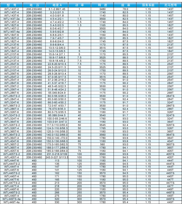 NEMA高效電機(jī)型號(hào):